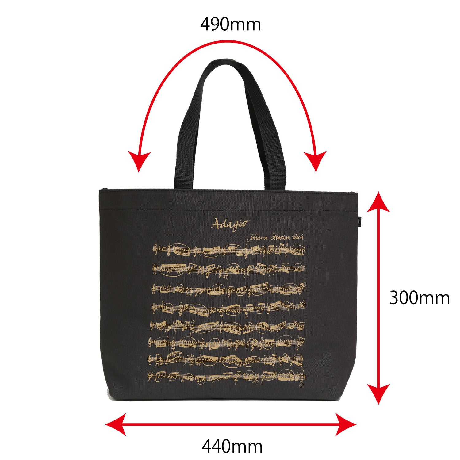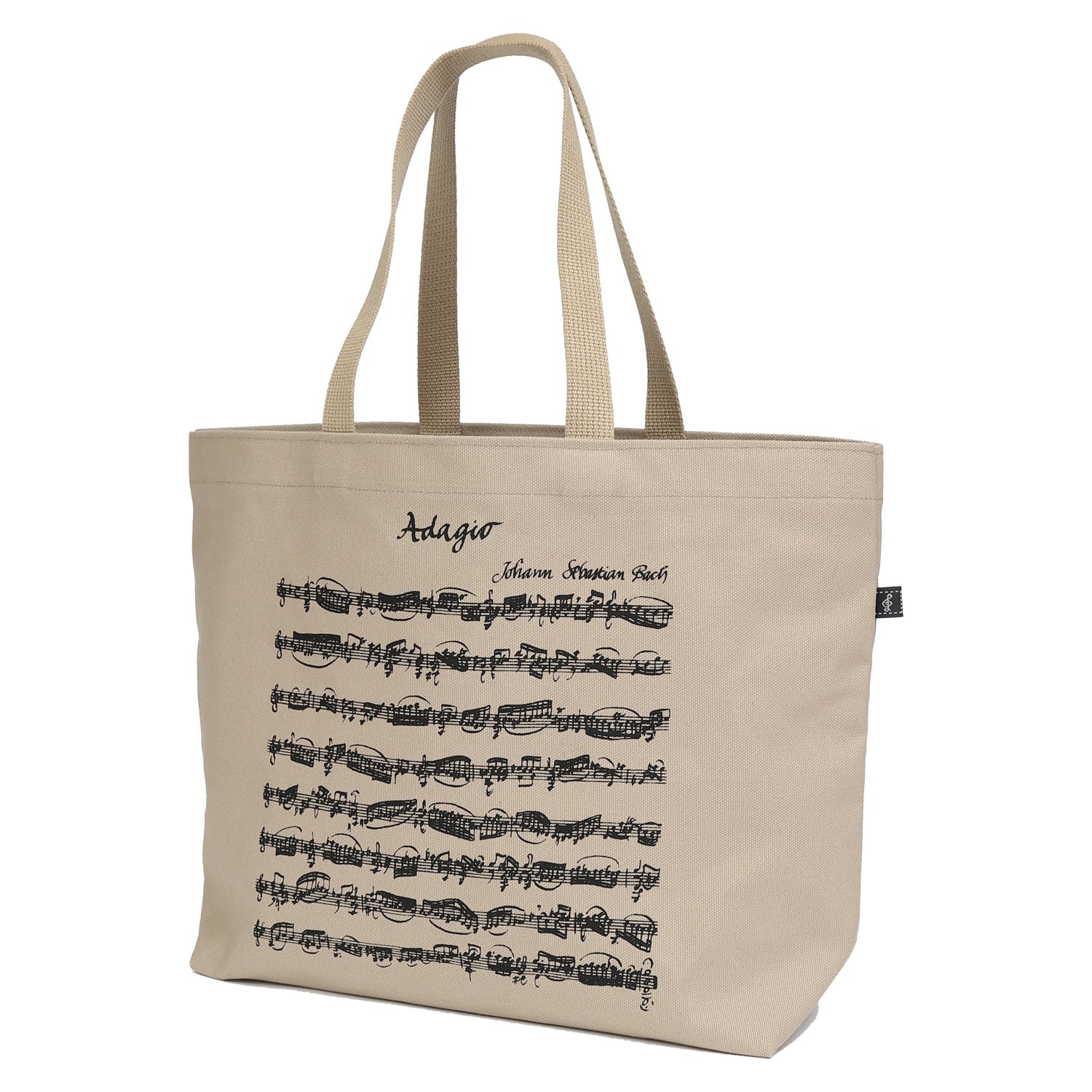 This stylish tote bag is made of sturdy canvas and features a print of Bach's Adagio sheet music. It can easily hold a cardigan, pouch, small items, and more, making it perfect for everyday use.