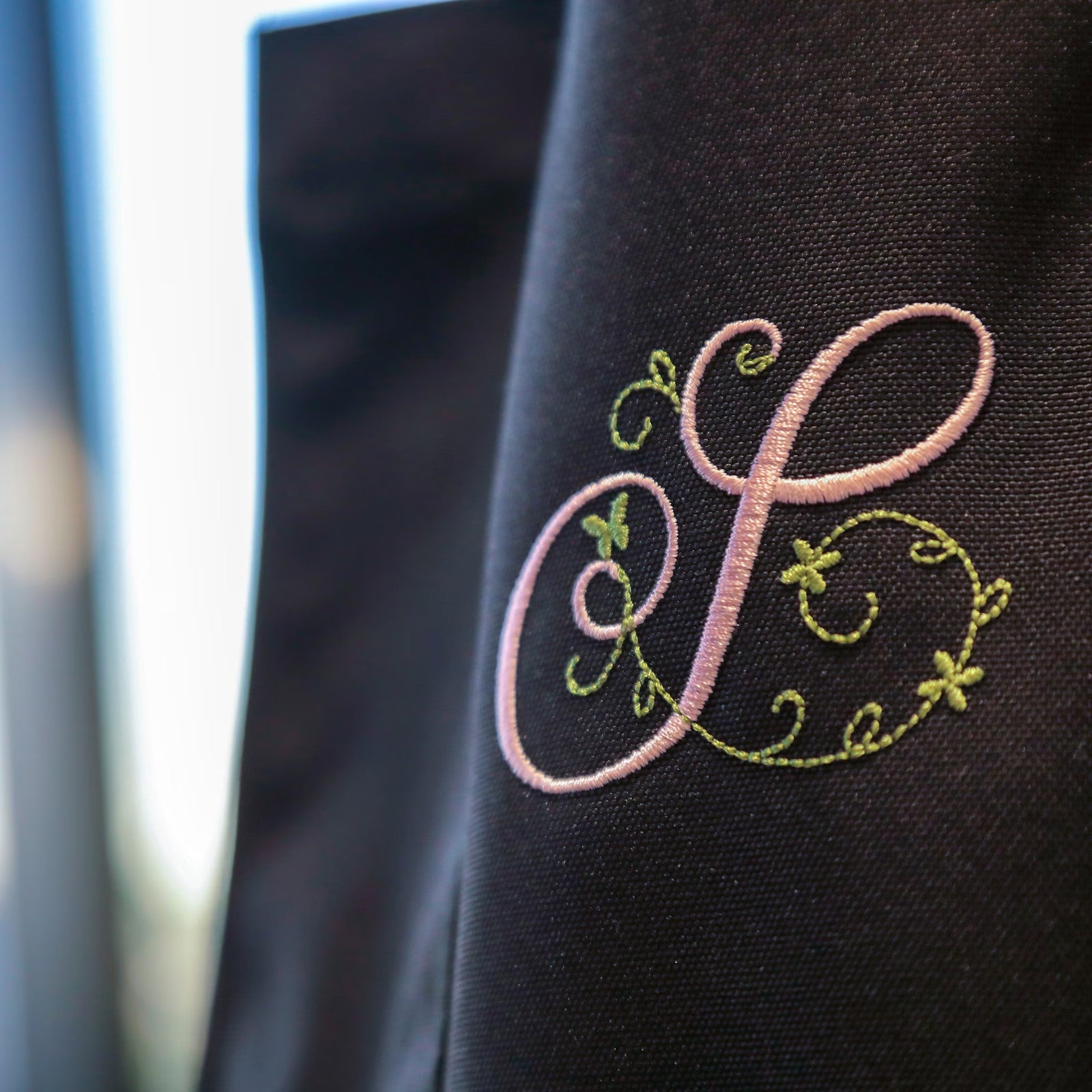 華やかな筆記体の刺しゅうです。