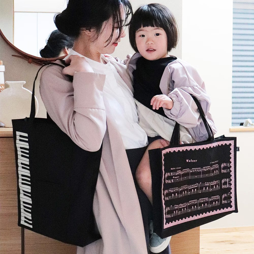 ミュージック・フォ・リビングの定番、鍵盤とト音記号のレッスンバッグ。