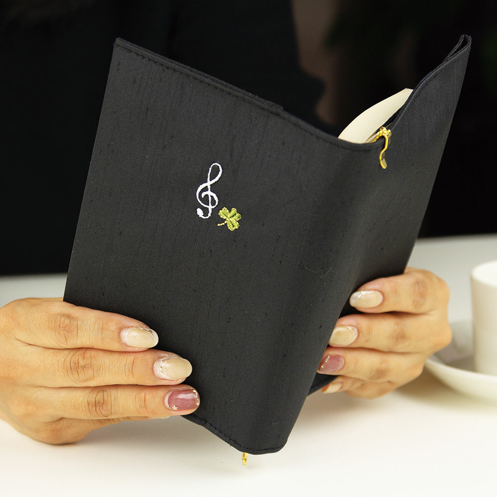 繻子(しゅす)織りブックカバー [鍵盤/飛び猫/立ち猫/ト音記号/ヘ音記号]