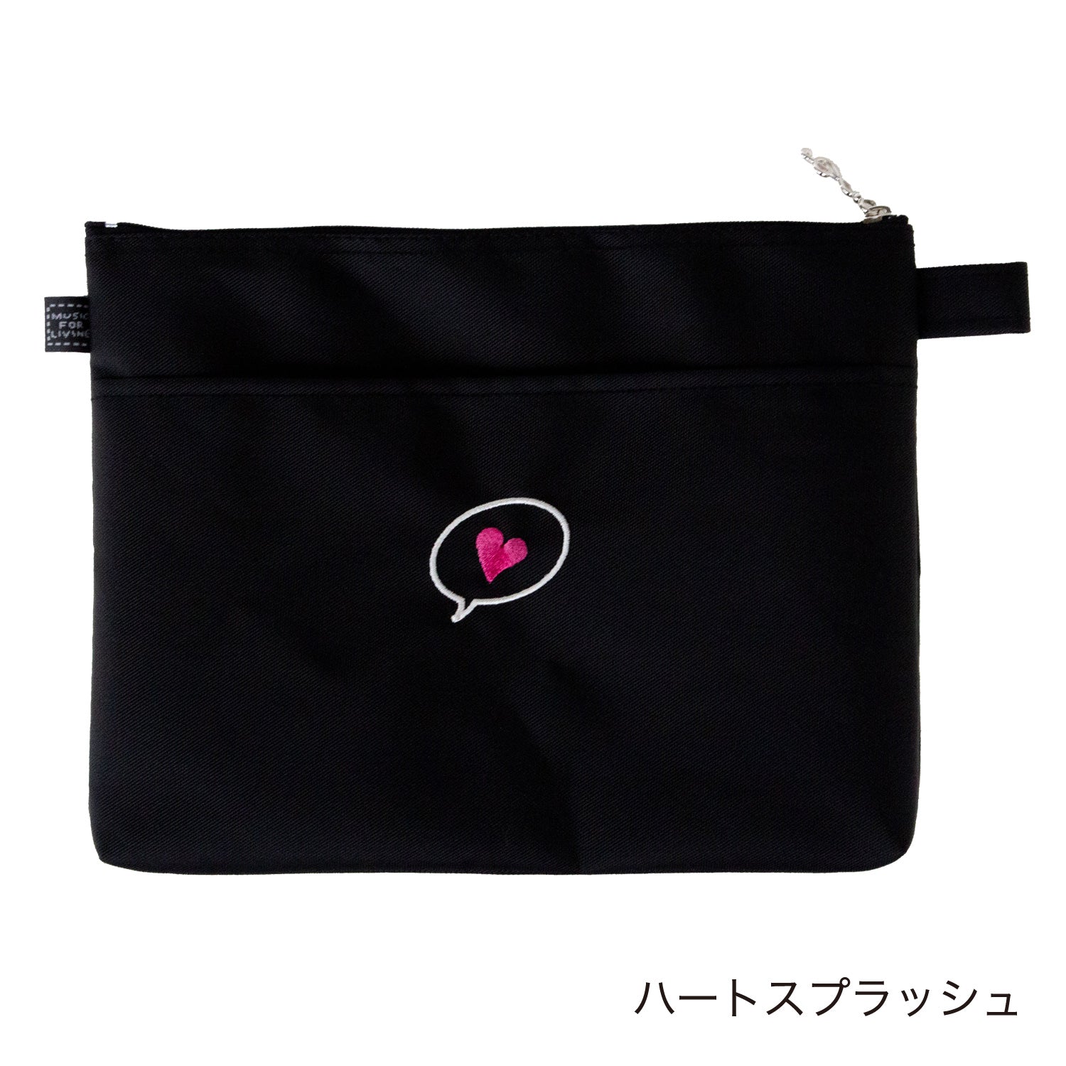 MFLの定番アイテム!の1つでもある【ポケットポーチ】に人気の目玉モチーフと ハートスプラッシュの刺繍を施しました♪