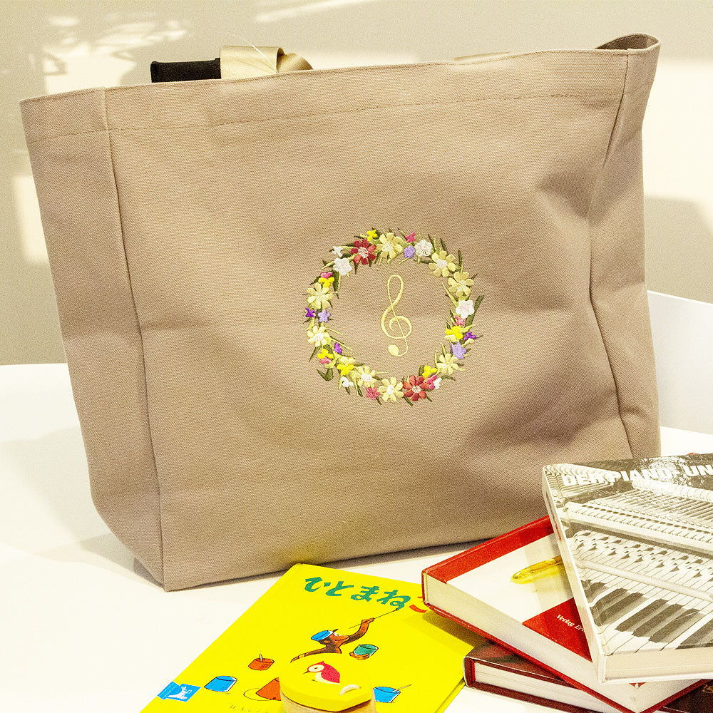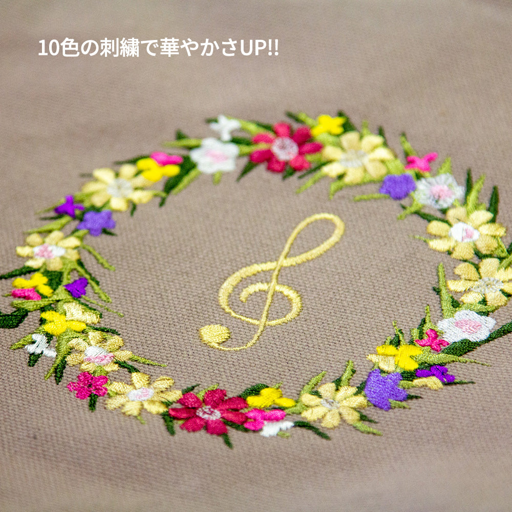 色とりどりのお花でリースを彩りましたのでセンターのト音記号をより華やかに!色使いや柄もスタンダード&ベーシックなので、レッスンはもちろん、通勤通学など多くの場面で大活躍してくれること間違いありません♪