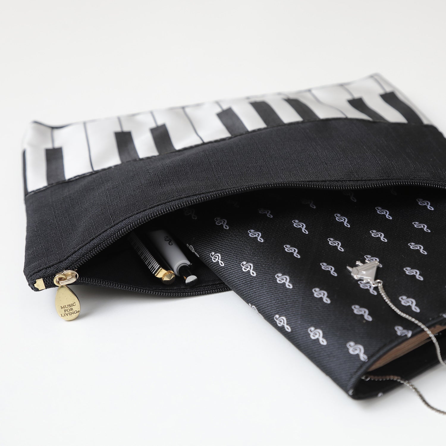 フラットポーチ 鍵盤 織リボン