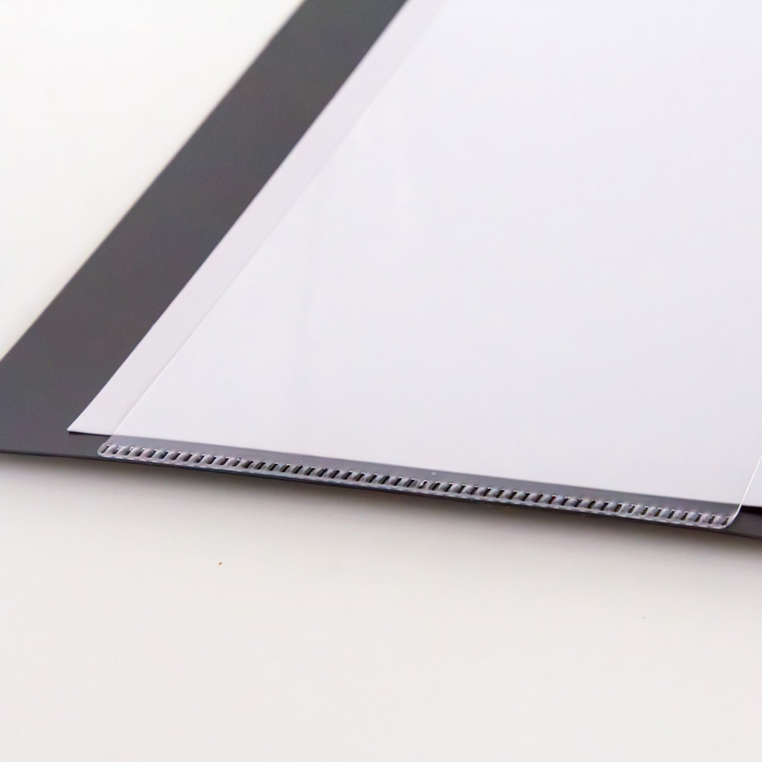 0.70mm厚のしっかりした素材を用いることで、楽譜を綺麗に保ちながら、持ちやすくページめくりもできるミュージックスコアカバーです。