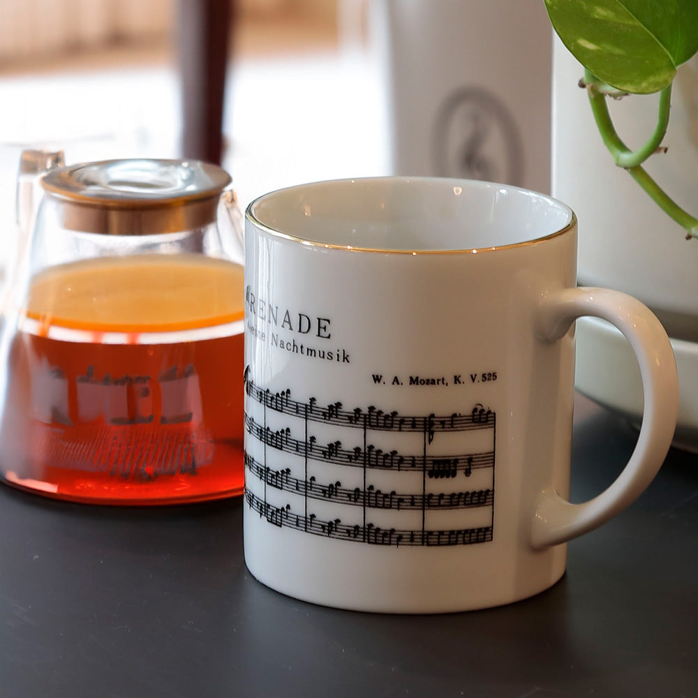 モーツァルトの代表作、「アイネクライネナハトムジーク」の譜面を デザインしたマグカップです。